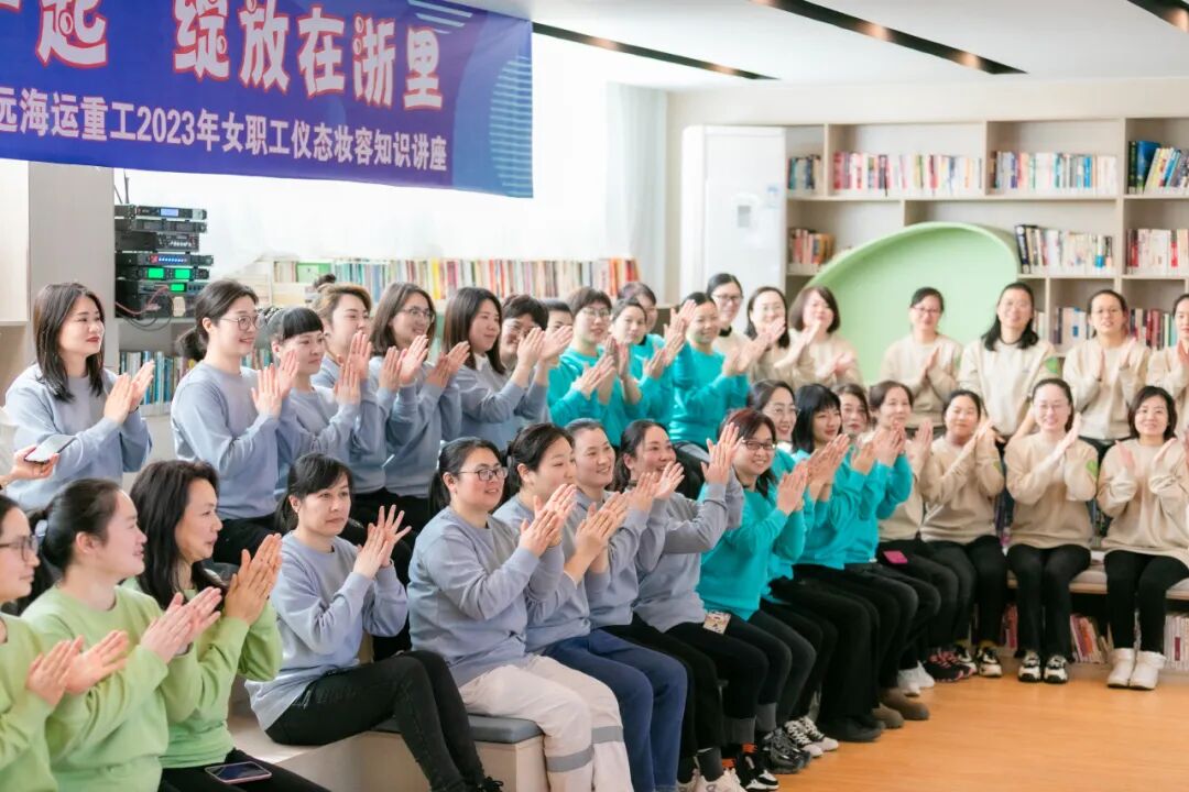 活动当日,舟山中远海运重工职工活动中心热闹非凡,节日氛围浓厚,以“Women在一起 绽放在浙里”为主题的女职工仪态妆容知识讲座精彩开讲,共吸引来自六横边检、公司各部门/工区的近80名女职工参与。